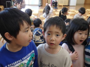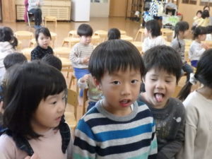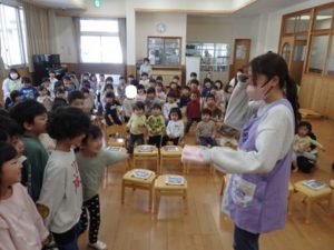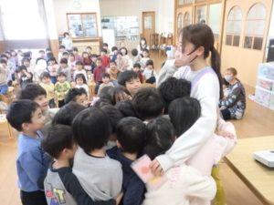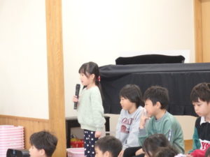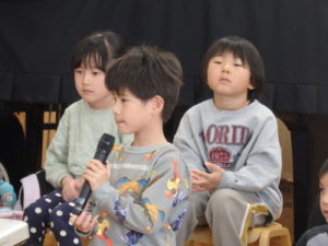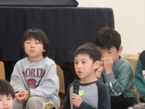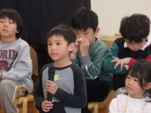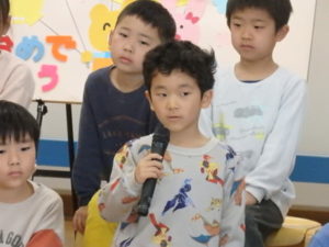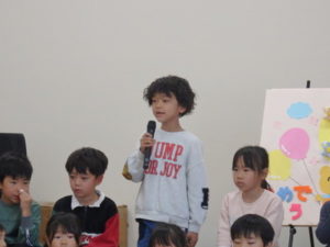 3月生まれの誕生会では、1人ずつインタビュー🎤を行い、歌のプレゼントがありました。