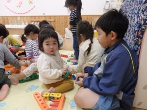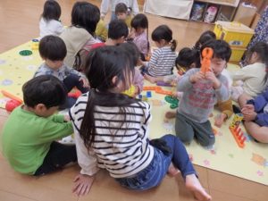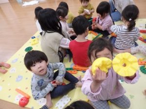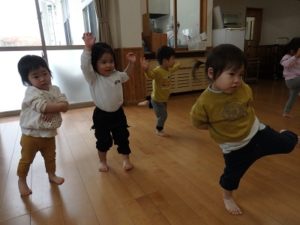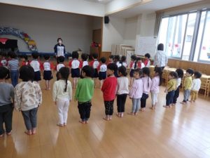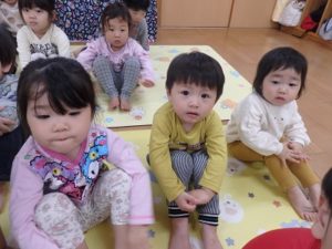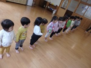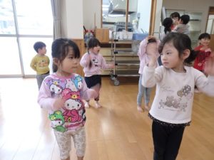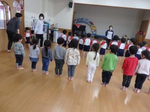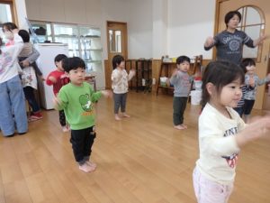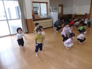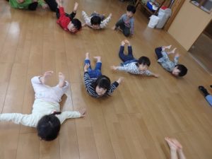 今日は、ぱんだ組さんの体操教室の時4月から体操教室が始まるうさぎ組も参加しました。