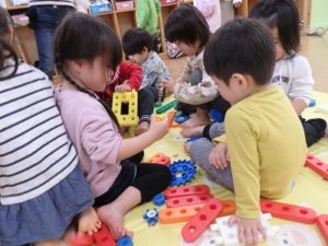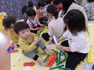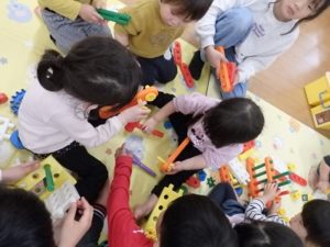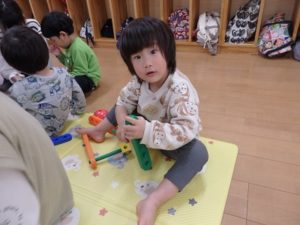 部屋では、工具ブロックを学童のお兄さん、お姉さんと一緒に作りました。