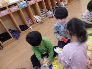 こんな感じかな?と見よう見まねで参加し、ぱんだ組になったらよろしくお願いします。と、上手に挨拶していました。
