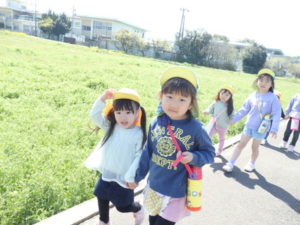 その後3クラスでお散歩に行きました。お散歩日和でみんなで楽しくお散歩が出来ました。