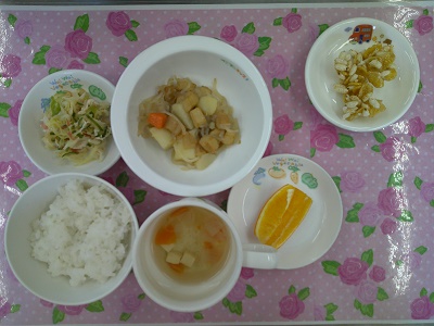 給食は、ちぎりじゃがでした。