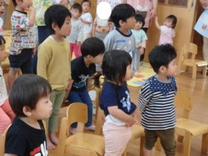 職員からの出し物では、クイズやゲームなどがあり、乳児クラスのお友達も参加し、楽しむ姿が見られました。