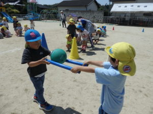 今日は、くま組🐻さんの技巧走のお手伝いをしたり、初めてきりん組🦒の技巧走をしてみたり、玉入れにも挑戦したりと沢山身体を動かして楽しみました。