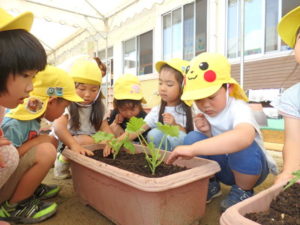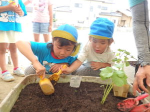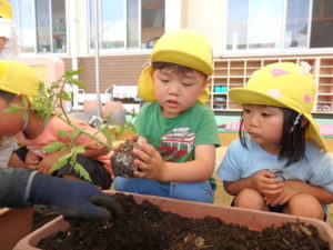 幼児クラス 野菜の苗植え