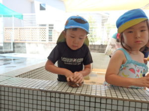 ピカピカ✨になったプールでのプール遊びが楽しみで、ワクワクな子ども達です😆