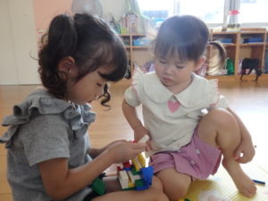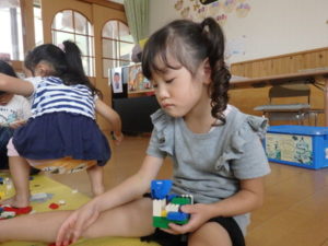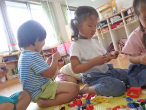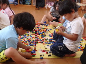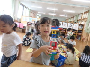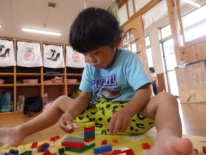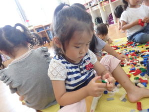 家🏡を作ったり高く積み上げたりと、色々な物を作って遊んでいました。
