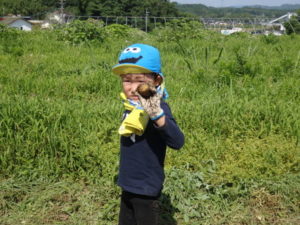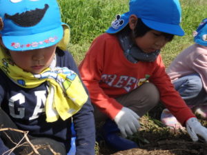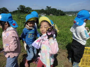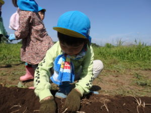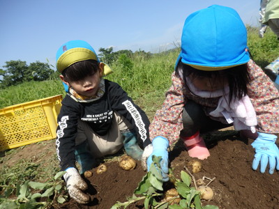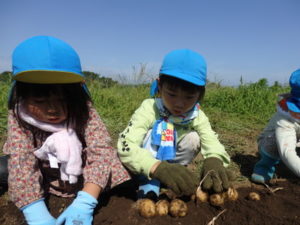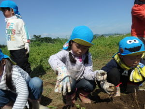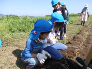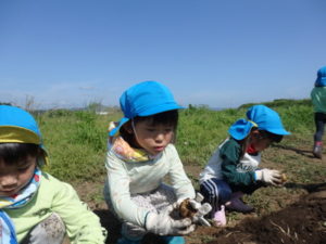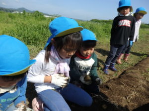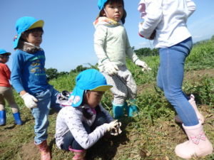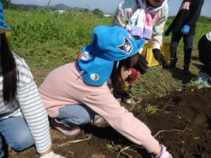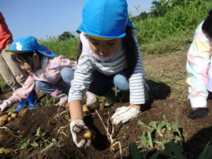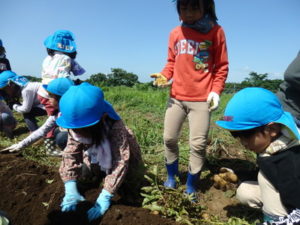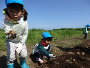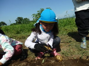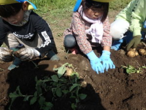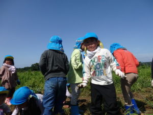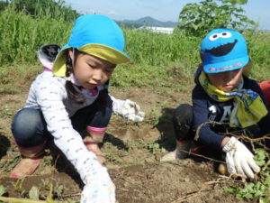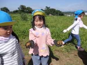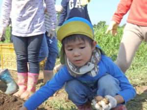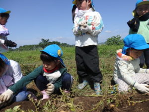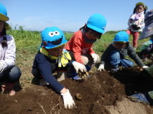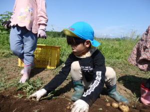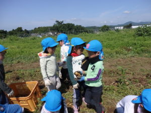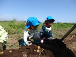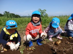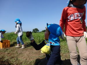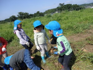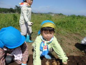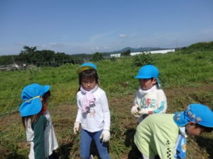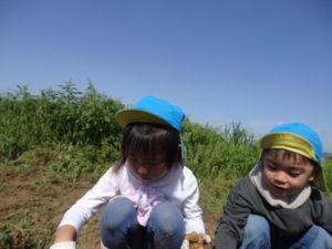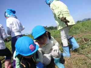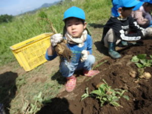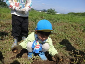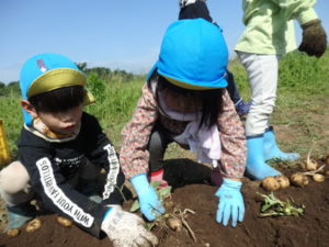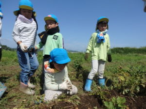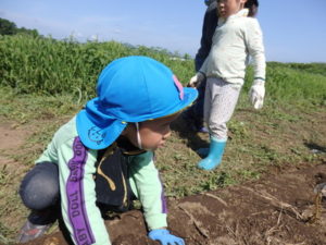 今日は、きりん組🦒さんだけで畑へじゃがいも収穫にいきました。