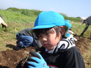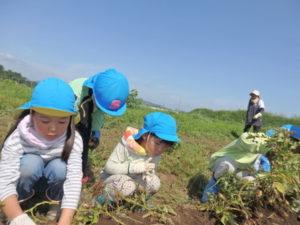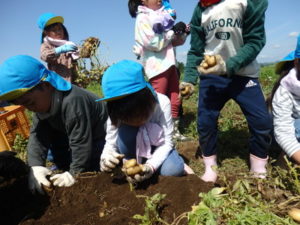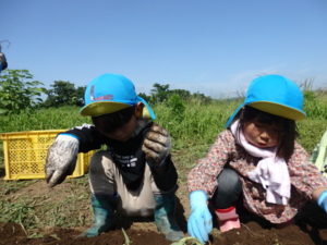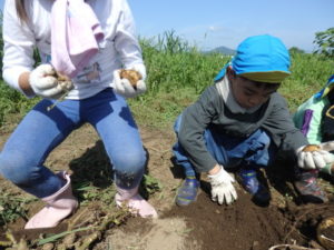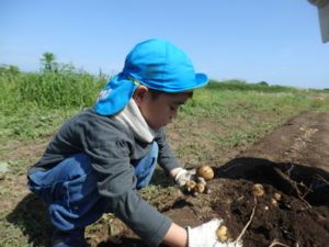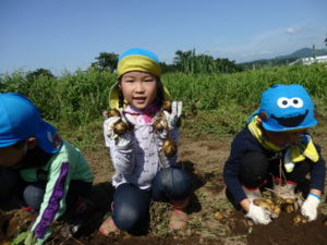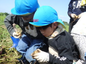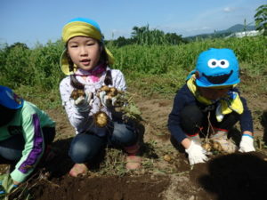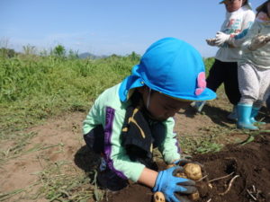 暑い中でしたが、「ダンシャク」と「メークイン」の2種類のじゃがいもを一生懸命掘りました。