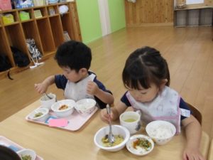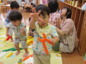 時には友達と玩具の貸し借りする様子も見られ、自然な関わりの中で思いやりや順番を待つ気持ちが育まれている様子がうかがえました。