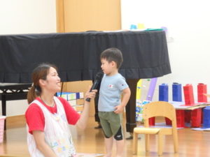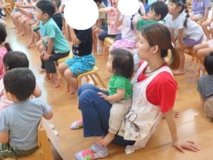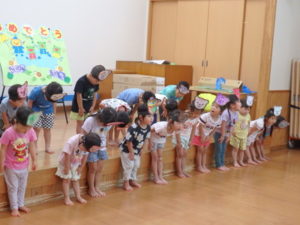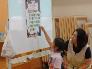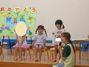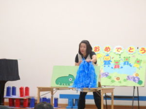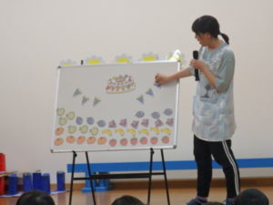 職員に出し物として、ペープサートや間違い探し、ダンボールシアターをし、みんなで大笑いして楽しみました。