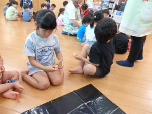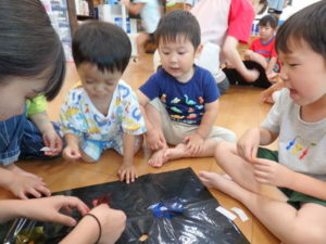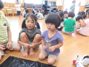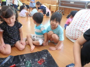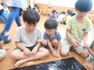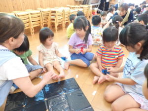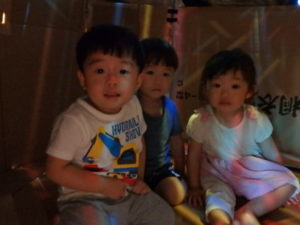 そして、うさぎ組🐇・ぱんだ組🐼・くま組🐻・きりん組🦒のお友達で、手作りプラネタリウム⭐をしました。