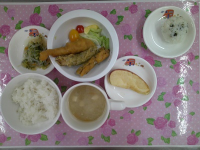 おやつは、ワカメおにぎりでした。