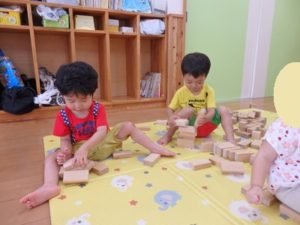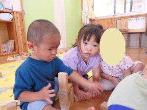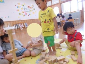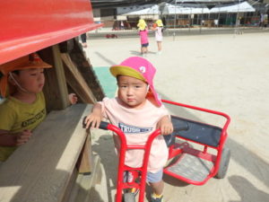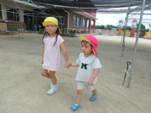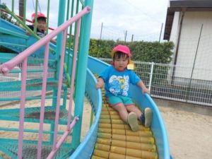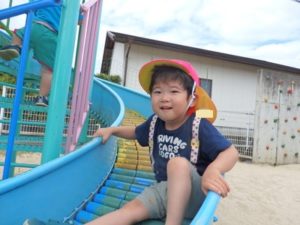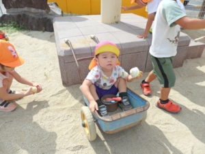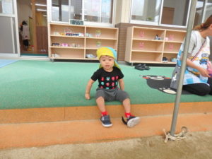 朝から風もあり、幾分か過ごしやすく、久しぶりに身支度をしたお友達から園庭で楽しみました。