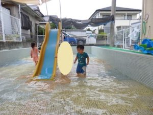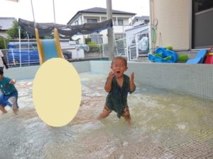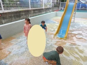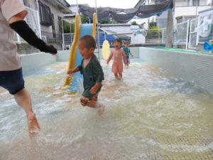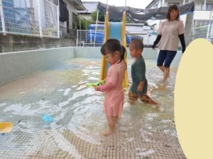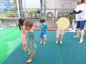 プールが大丈夫なお友達は、水遊び道具で水遊びを楽しみました。
