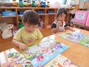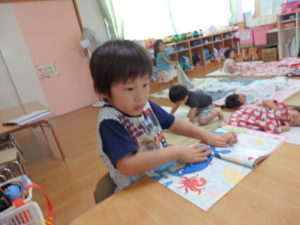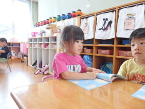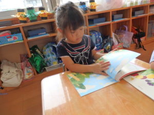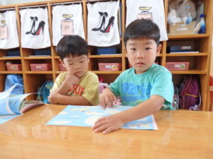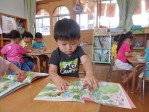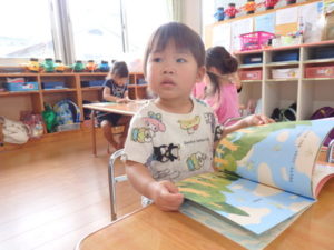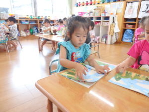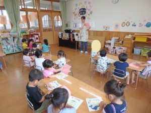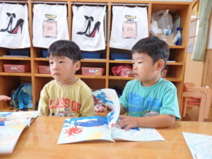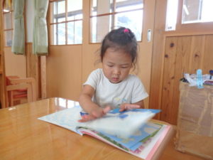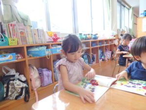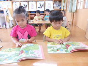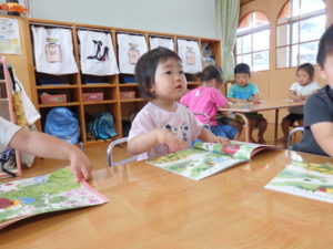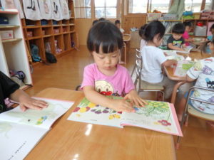 身体測定をした後、7月の月刊絵本を見ました。