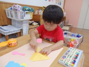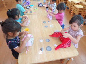 今日から数名のお友達から順番に、バンダナを使用しています。