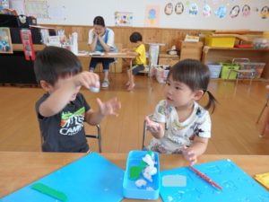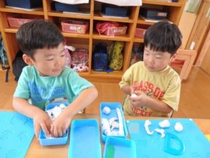 その後、粘土遊びをしました。