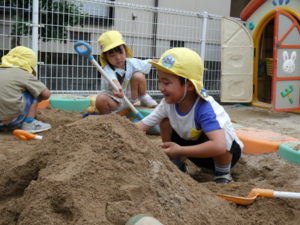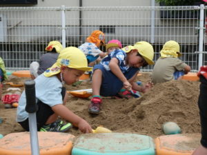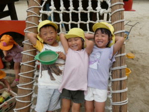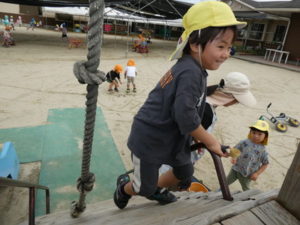 今まで、仲の良い友達と集まって、いくつかのグループに分かれて遊ぶ子ども達でしたが、子ども達だけで声を掛けあって、クラスのみんなで遊ぶ姿を見る事ができ成長を感じました。