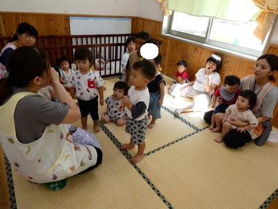 毎日暑い日が続き、水遊びを楽しみにしている子ども達ですが、体調がすぐれず参加できるお友達は半数くらいです。