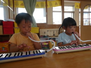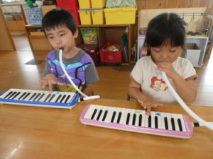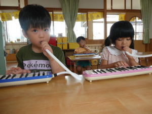 今日は、鍵盤ハーモニカ🎹の練習で「カエルの合唱🐸」を弾いたり、「きらきら星」のフレーズを練習しました。