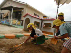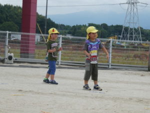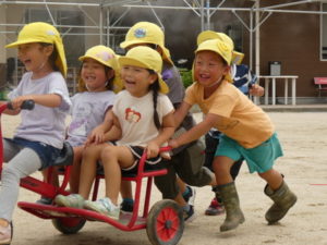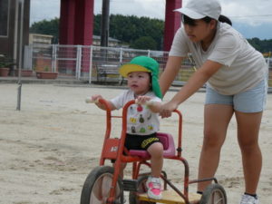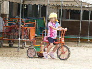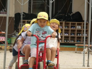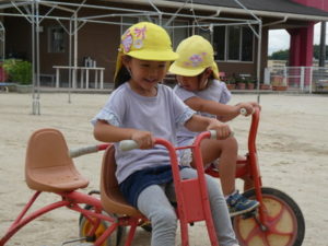 思いっきり走り回ったり、三輪車に乗り合って楽しんだり・・・