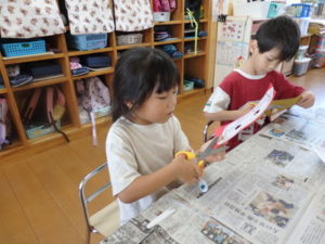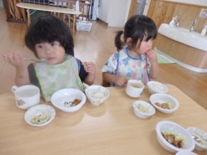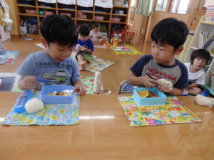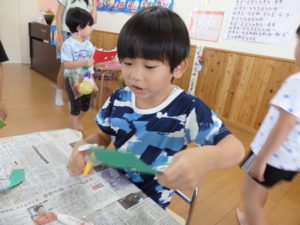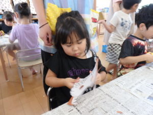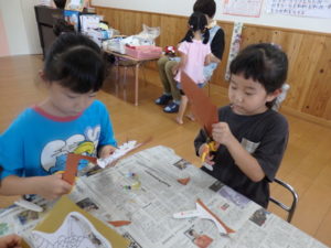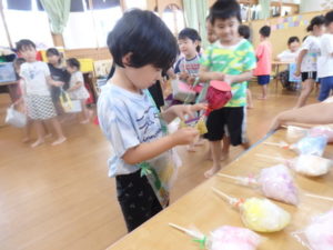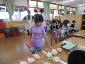 夏祭りで出店してある物を日頃の保育で取り入れ、少しずつ準備していきました。