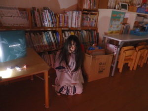 学童さんは夏休みが始まってすぐから、お化け屋敷製作に力が入り、思いつく色んなお化けを自分で考え製作していました。