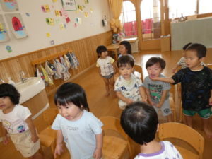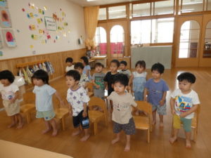 お集まりでは歌を歌ったり、先生の話を聞いたりと、みんなで過ごしています。