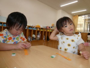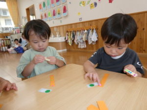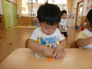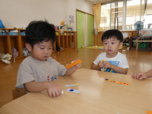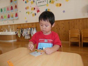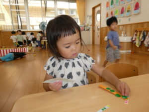製作では、シールを使い、一人ひとり夢中になって貼っていました。