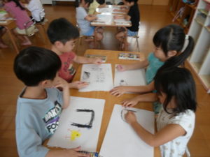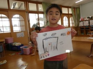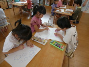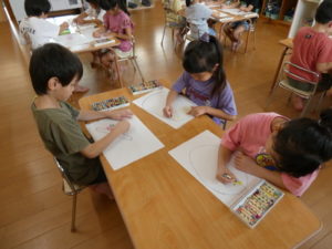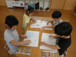 今日は、お泊り保育での思い出を絵に描いてみました。