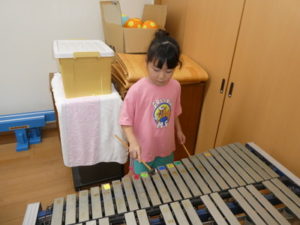 その後、発表会の合奏の練習をしたり、玩具で遊んだりしています。