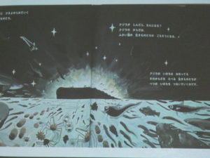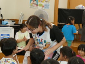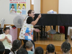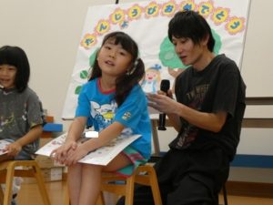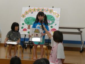 最後はプロジェクターを使用しての絵本「くじらが しんだら」の読み聞かせがありました。薄暗い中映し出される絵本の絵を不思議そうに見ていた子ども達でした。