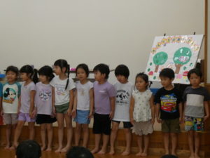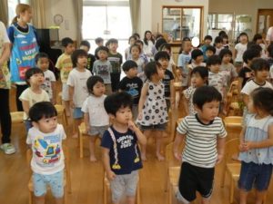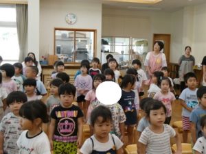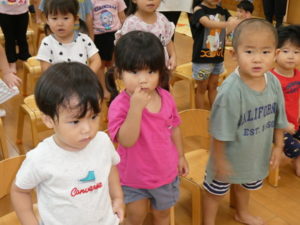 今日は9月生まれのお友だちの誕生会を行いました。少ない人数でしたがみんなの前に立つ姿が誇らしげで、とても可愛らしかったです。