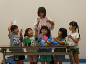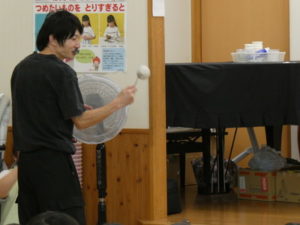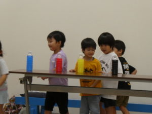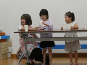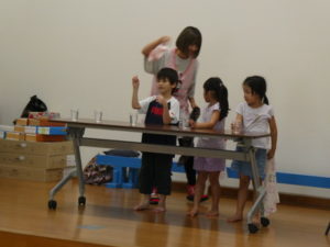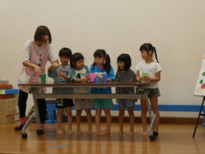 年長児さんが見せてくれたマジックショーに子どもたちは目を丸くして見入っていました。「すごーい!」と歓声があがっていました。