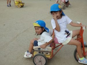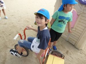 朝、登園してからは、「挨拶運動」をして戸外遊びをして息抜きします。