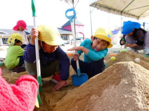 朝から、戸外遊びをしています。