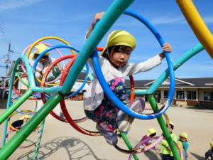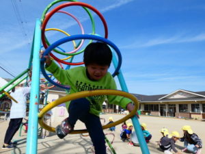 みんなで朝の体操をした後に、リングジャングルジムに挑戦❣❣