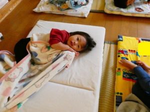 もうすぐ発表会で、今日も劇あそびと楽器遊びの練習をしました。