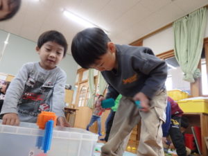今日から冷え込むとのことでしたが、朝から元気いっぱいに遊び、上着も着ないで遊ぶ子どもも見られました。
