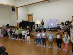 年長児さんは、保育園最後のお誕生会を親子で楽しみ、また一つ思い出ができたと思います。