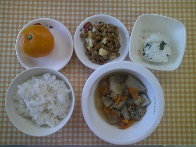 今日の給食は、沢山の具材が入ったのっぺい汁でしたね。