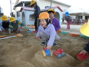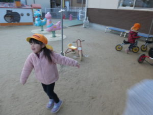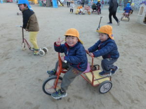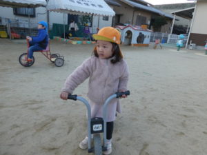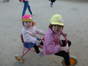 外遊びも行い、ままごと、三輪車、虫見つけ等楽しみました。