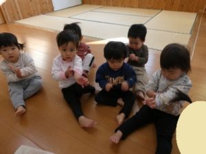 朝のお集まりでは、お友達の誕生日のお祝いをしました。