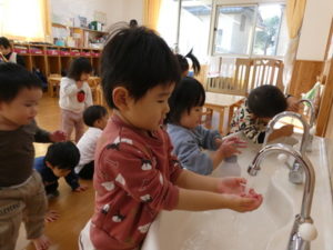 りす組🐿は最近、手洗いを自分でしようとする姿が、たくさん見られるようになってきました。