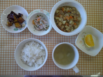 おやつは、保育園の畑でとれたさつま芋を使って大学芋!