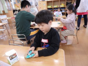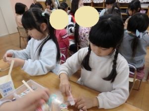 病欠の子が多く、小学生も保育園児も予定より少ない参加となってしまいましたが、各コーナーに分かれて楽しんでくれました。
