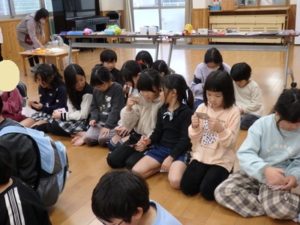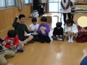 田島っ子タイムが終わると、小学生はお楽しみのビンゴの時間!早くしたくて、片付けのお手伝いが進みました(笑)