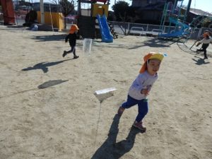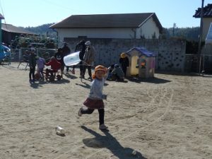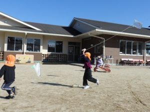 6日(火)は凧作りをして、出来上がった凧をあげました。