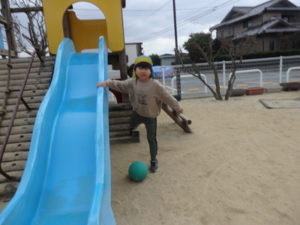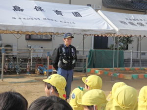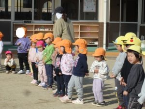 避難訓練の後は、戸外遊びや凧揚げをして楽しんでいます。
